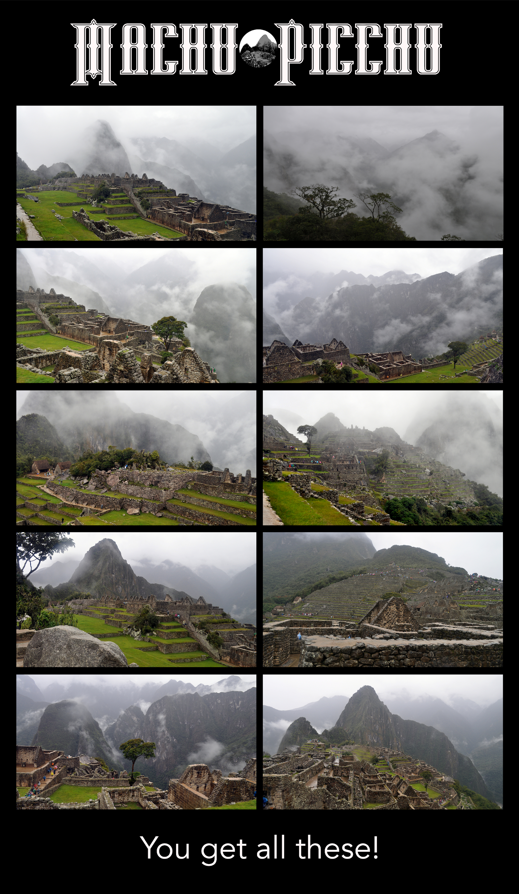 This photo wallpaper pack includes all 10 designs in the "Machu Picchu" series sized 7680x4320 .jpg for 8K 4320P Definition video production or Powerpoint Backgrounds.